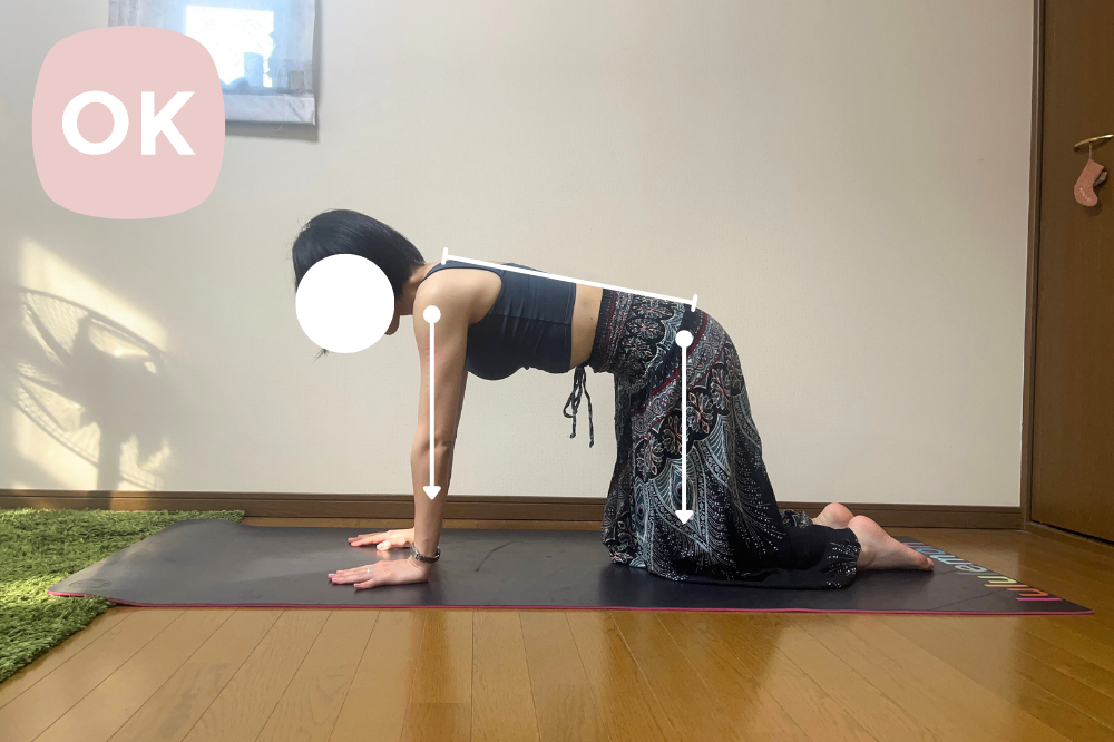 1. 四つん這いになる(手は肩の下、膝は腰の下)