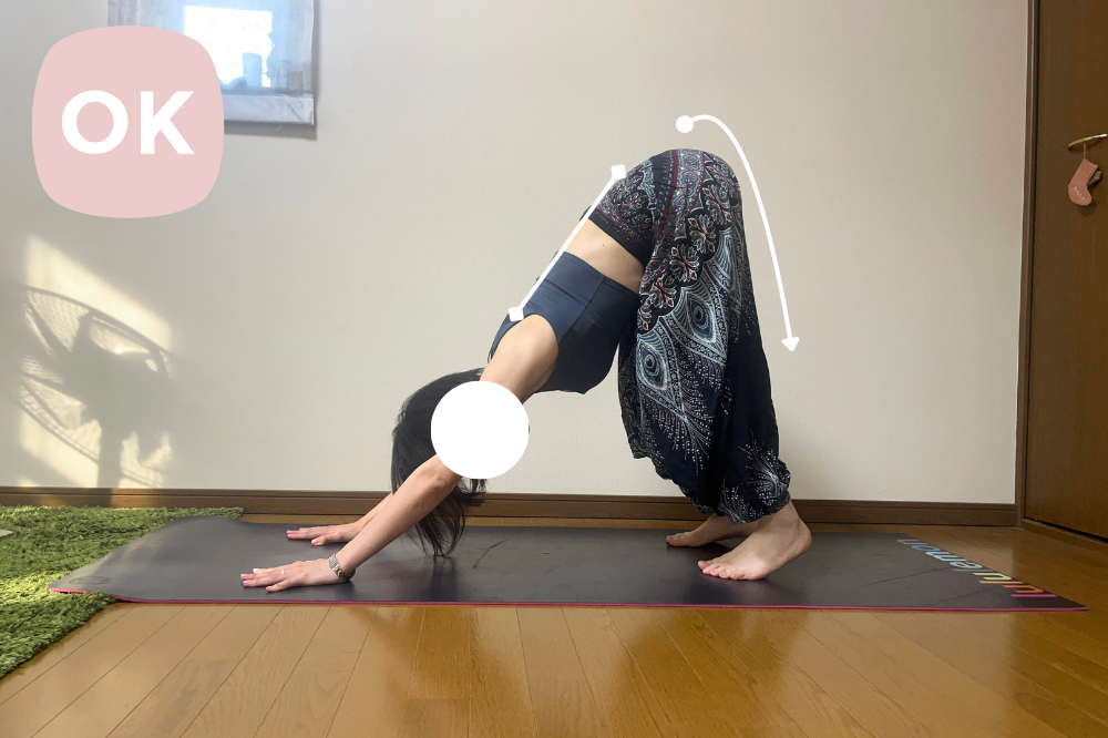 このポーズは、犬が前足を伸ばしてお尻を突き上げるように伸びをしている姿に似ていることから、「下を向いた犬のポーズ」と呼ばれるようになりました。