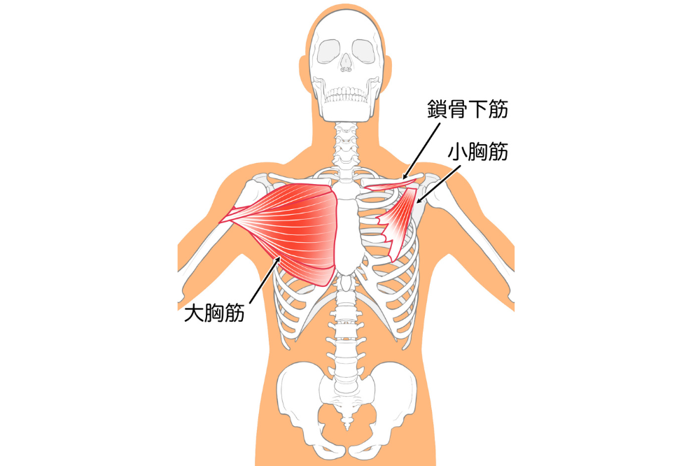 ● 大胸筋(身体の前側)